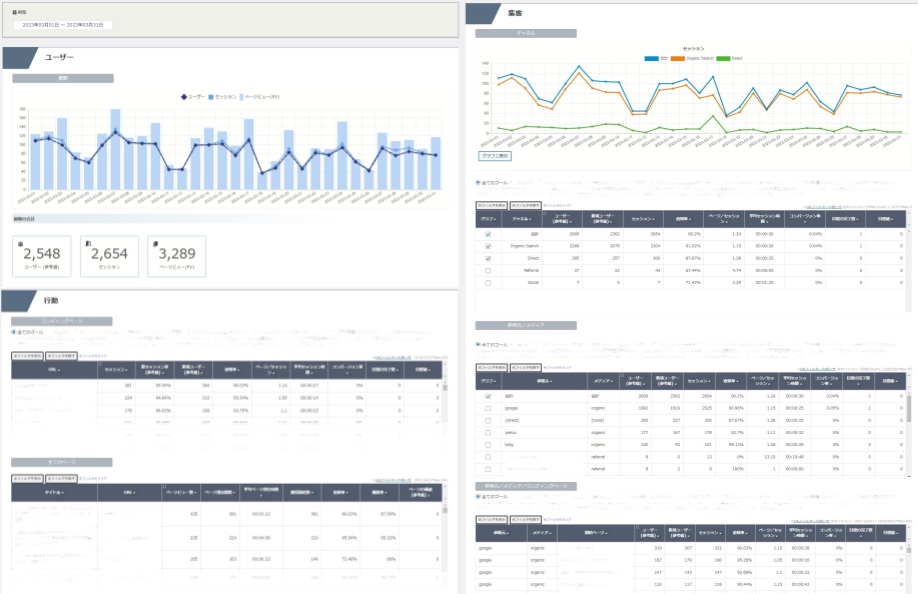 バックアップしたデータはユニバーサルアナリティクスのようなメニュー別ビュー画面でいつでも自由に閲覧できます。BIツールを使ってのデータ加工は不要です。